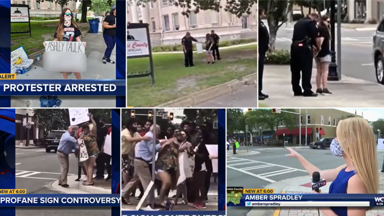 She was also there as groups challenged their very right to protest, with one individual arrested for a “vulgar” sign.